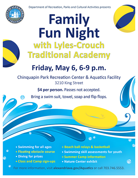 Location:Chinquapin Park Recreation Center & Aquatics Facility, 3210 King St. (Map This)