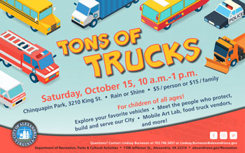 Join us for Tons of Trucks on Saturday, October 15! Featuring your favorite vehicles, food trucks, and a mobile art lab.