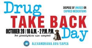 As part of the Drug Enforcement Agency’s National Drug Take Back Day, the Alexandria Police Department, Alexandria Sheriff’s Office, and Alexandria Health Department, with cooperation from the Substance Abuse Prevention Coalition of Alexandria, are staffing multiple drop-off locations for safe medication disposal.